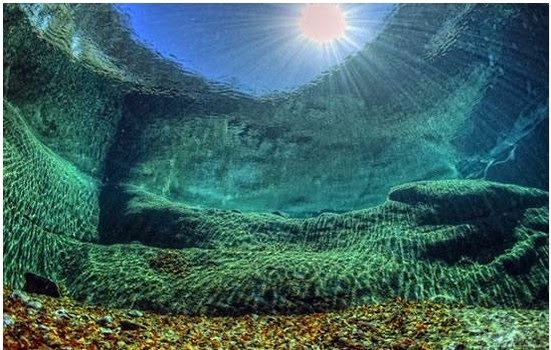 Kebanyakan mereka lebih suka untuk mengambil gambar dari jambatan yang dibina di atasnya. Claudio Gazzaroli seorang jurugambar yang menawarkan perspektif yang berbeza Saya menyelam 50 kaki untuk ke dasar sungai Verzasca dan berjaya menangkap kejernihan yang hampir wajar . 'Saya mahu menunjukkan keindahan tempat ini dengan cara yang baru, "kata Gazzaroli. Melihat kerjanya,